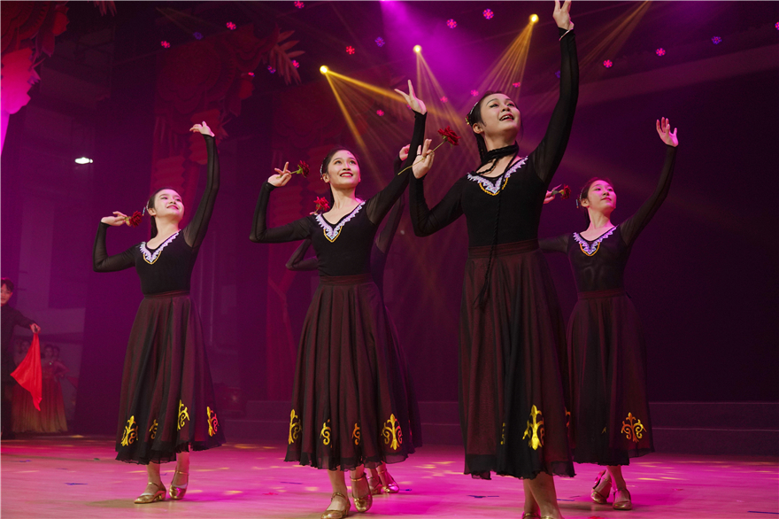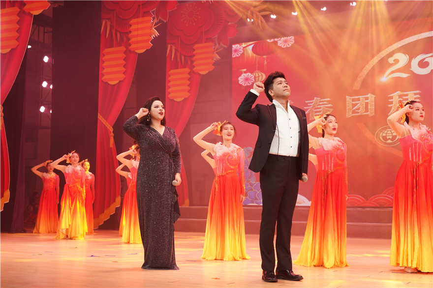 由艺术学院2018级舞蹈专业学生带来的舞蹈《锦绣中华》,串联了不同民族的舞姿,为这场文化盛宴增添了美妙的光彩;新闻与传播学院学生带来的朗诵《青春之歌》演绎了青春里该有梦想、奋斗和奉献,鼓舞着我校师生在新的一年努力奋进、不负韶华;艺术学院教师羡涛、蔡静雯表演的歌舞《从那一刻起》唱出了青年一代的远大理想与责任担当,为祖国的锦绣前程和学校的光辉未来送上了美好的祝福。