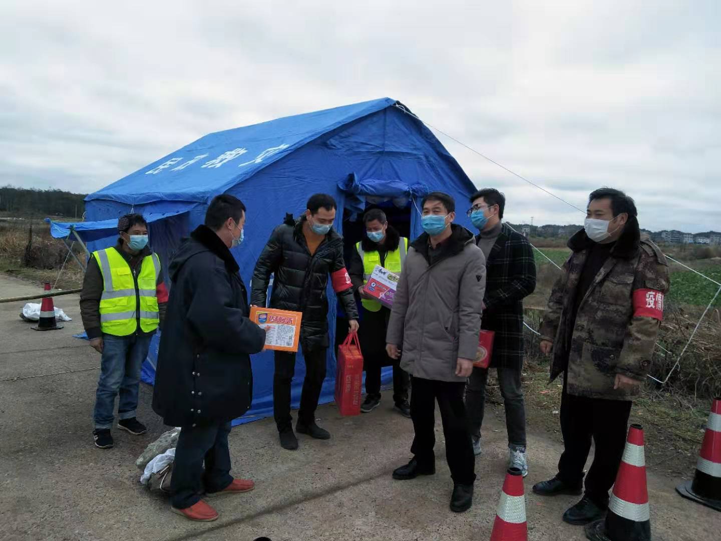 杨洋(右二)和父亲为家乡捐赠防疫物资