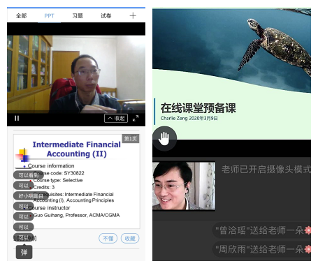 线上教学课堂中,教师们灵活运用钉钉、雨课堂、腾讯会议、微信等网络教学平台有序地进行线上教学,师生反响热烈。许多老师表示,虽然教学方式发生了变化,带来了新的挑战,但也提供了新的教学思路,可以帮助日后更好实现线上线下混合式教学。
