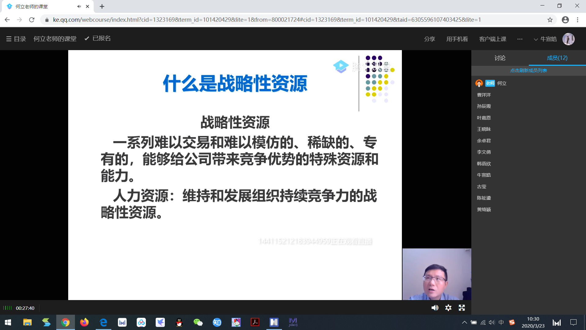 公管学院教师何立表示,在线教学可以达到现场授课80%的效果,使用了课件PPT、视频、教学案例、互动答疑等方式。在线教学同样可以解决师生互动、讨论、现场代入感的问题,在使用腾讯课堂等教学平台的同时,还有本课程的全体师生微信交流群,可以在课前课后及时解答课程问题,可以对在线学习的研究生们,起到较好的知识传授和教学指引工作。