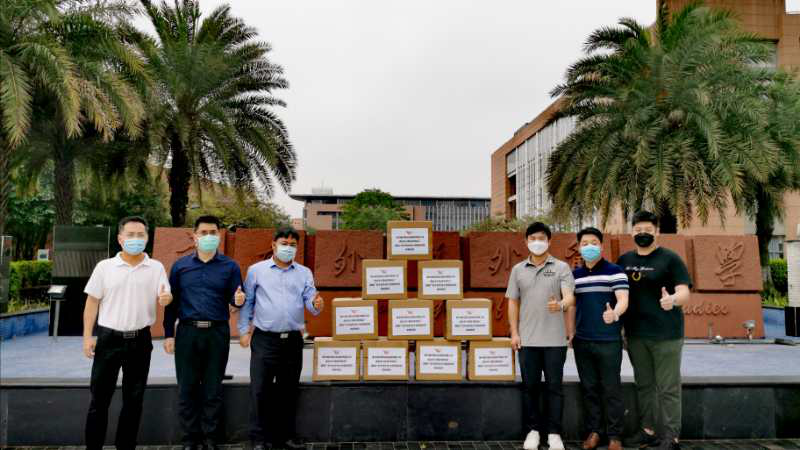 捐赠仪式在南校区校门前广场举行,由校友总会秘书长谢文新主持。李榕庆表示,公司积极承担社会责任,一直致力于慈善公益活动,成立之初便树立将慈善融入诚实经营,道德经商,缔造经典,追求完美的宗旨。“作为广外校友,始终牵挂着母校,能为疫情防控工作贡献自己的力量,做些力所能及的事情,我感到很荣幸很开心。”
