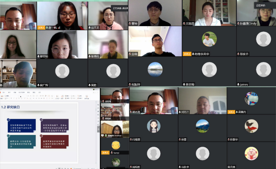 “下面有请所有答辩同学回到网络会议室,由答辩组组长宣布预答辩结果”,随着预答辩结果的公布,商学院23名学术型研究生线上完成了毕业论文的预答辩。作为全校最早采用研究生集体“云答辩”的学院之一,商学院在筹备过程中尽量还原答辩和指导的现实状态,降低线上新模式带来的不适应感,力求为师生营造最舒适的“云端”体验。
