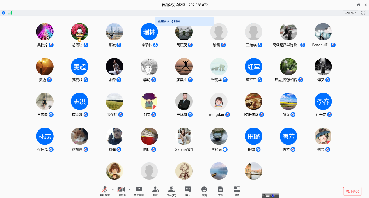 李和民表示,线上教学要增强交互性与现场感,建议老师可以利用线上教学便利性,多听课,教学相长;课程思政是近年来课程建设中较为重要的问题,他提醒老师在上课时不仅要注重知识传授,更要重视育人过程。翻译学院院长李瑞林在总结发言中表示,思政教育应当与人才培养融合,在全球化环境下,要弘扬中国传统文化,实现中国文化走出去,增强国家传播能力,就要培养具有国际视野,家国情怀的人才。互联网时代,混合式教学模式是大势所趋,既包括传统教学和互联网教学融合,也包括教学内容与课程思政融合以及教学内容、教学过程、教学评价融合。多元交互的混合式教学是未来教学发展道路,要进一步推进课程改革。“双带头人”教工党支部书记蓝红军就四位老师的主题发言作点评。他总结归纳了主题发言的共同点:以学生为中心,关注学生需要;理念先行,探索有效教学模式;教学行动中开展研究,开展的教学研究指向教学行动的改善;展示新时代师者精神和职责。