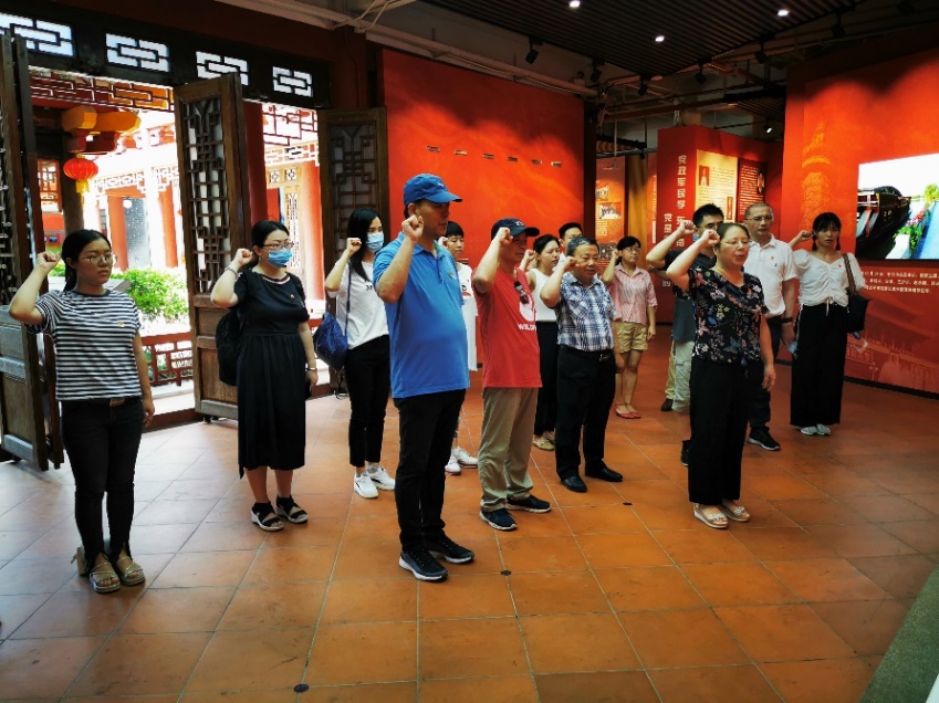 学院教职工党员一行还参观了广东省党员教育基地、广东省重点文物保护单位——叶挺独立团团部旧址纪念馆(阅江楼)。新闻学院教职工党员在此重温入党誓词,缅怀“铁军”出生入死的革命精神,激励学院上下在建党99周年之际不忘初心、牢记使命,充分发挥党组织战斗堡垒作用和党员的先锋模范作用,推进学院国际传播人才培养与科学研究事业再上新台阶。