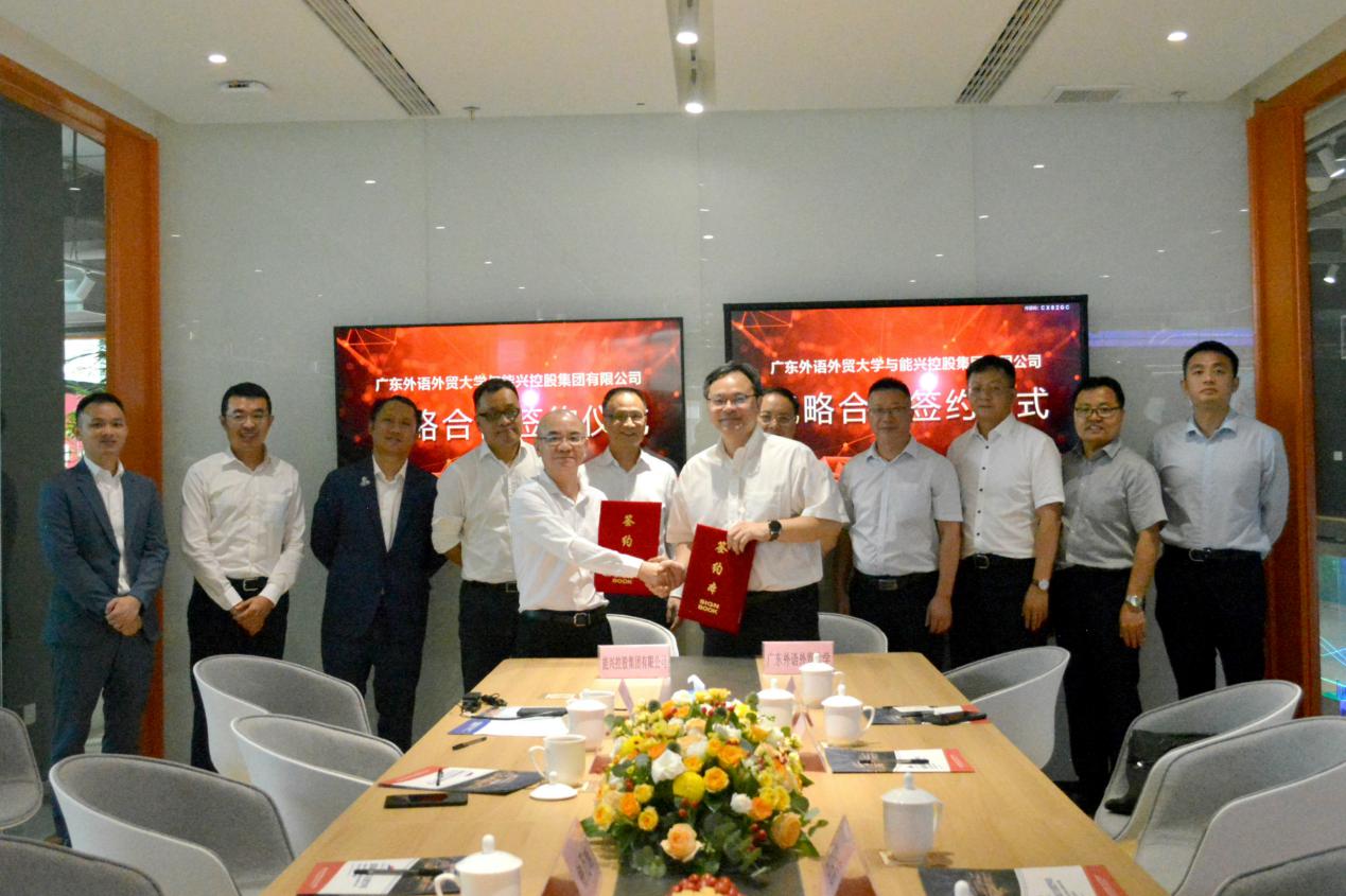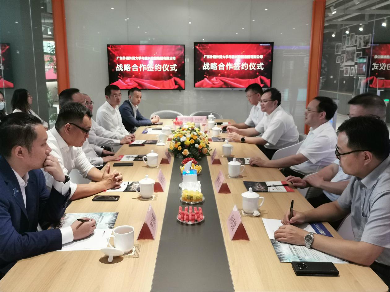 本网讯 7月31日,我校校长石佑启、副校长刘建达率相关职能部门负责人到访能兴控股集团有限公司并签订校企战略合作协议。能兴集团董事局名誉主席、广外校董钟乃雄,董事局主席陈俐接待了石佑启一行。