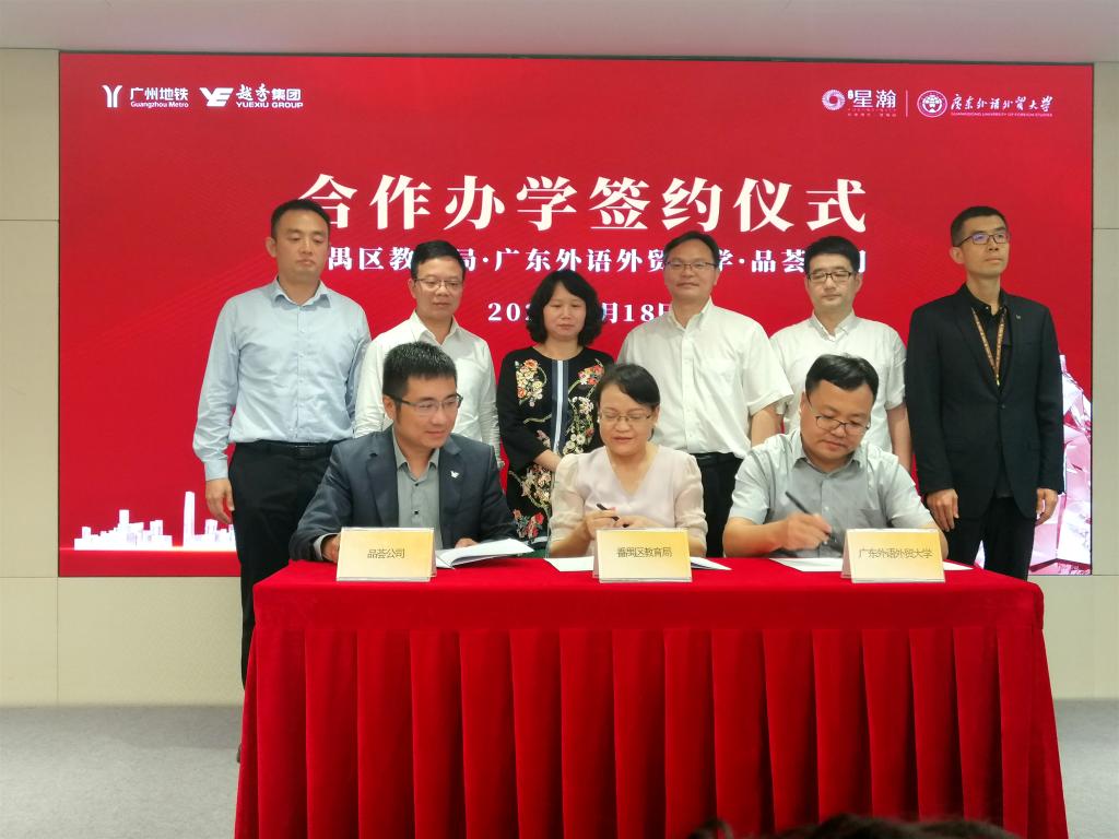 本网讯 9月18日下午,广外番禺星瀚学校三方签约仪式在广州国际金融中心58楼举行。番禺区教育局、越秀地产及我校代表共同签署“广外番禺星瀚学校”合作办学框架协议,我校副校长刘建达在仪式上致辞。