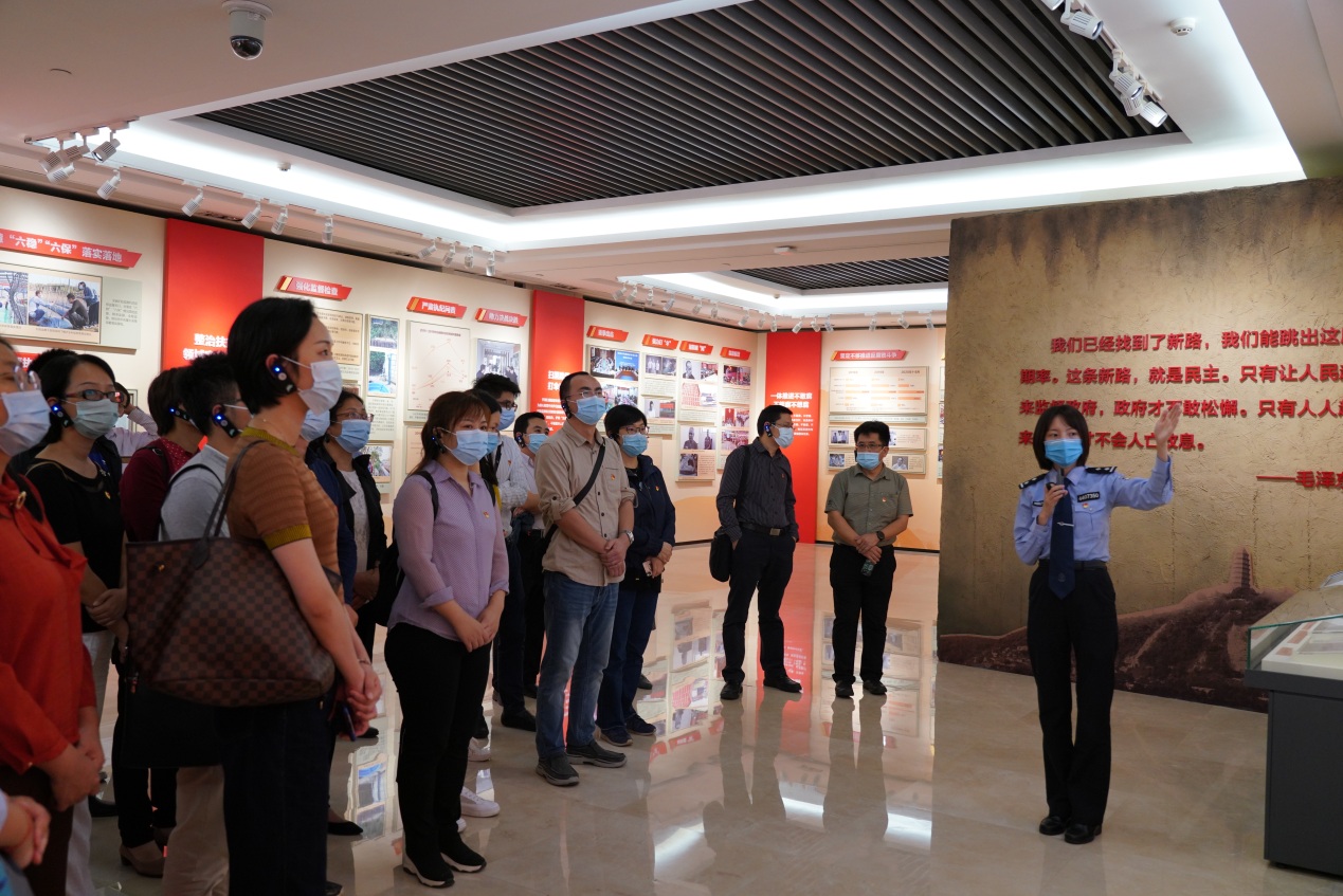 活动中,全体党员面对党旗举起右手,重温入党誓词。随后,在讲解员的引导下,依次参观了教育基地内“庄严承诺、砥砺前行、南粤清风、政治纪律篇、组织纪律篇、廉洁纪律篇、廉洁纪律篇、群众纪律篇、工作纪律篇、生活纪律篇”等展厅。展厅综合运用图文、实物、多媒体3D等现代化技术形式,展现了以习近平同志为核心的党中央在推进全面从严治党、党风廉政建设和反腐败工作的决心,以及广东省近年来在反腐倡廉工作方面取得的成效。展厅中一件件贪污腐败的事例触目惊心,一个个声泪俱下的忏悔令人惋惜,一幅幅身陷囹圄的画面发人深省,警示党员干部要从中吸取教训,时刻保持头脑清醒,常修为政之德、常思贪欲之害、常怀律己之心。