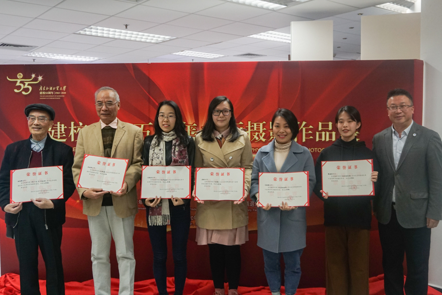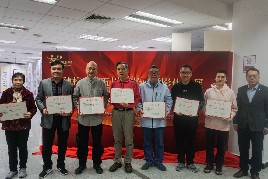 揭幕仪式后,王廷惠,党委常委、宣传部部长、教师工作部部长胡文涛,党办、校办主任谢伟光分别为获奖代表颁奖,中文学院党委书记周东兰宣读了书画摄影展一至三等奖获奖名单。