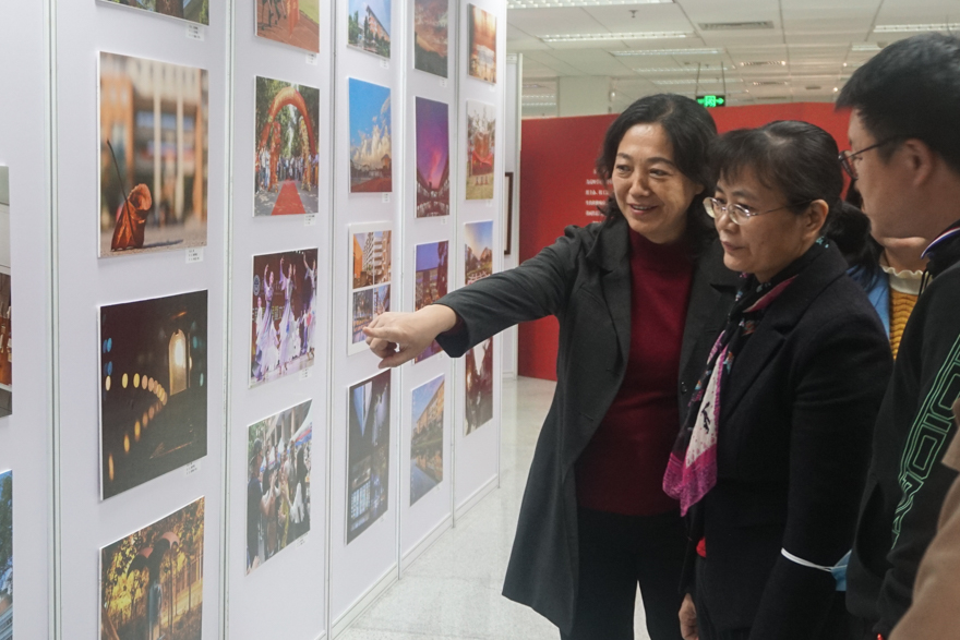 本网讯 由建校55周年系列活动宣传组主办,校工会、离退处、图书馆、中文学院承办的建校55周年书画摄影作品展,近日在北校区图书馆一楼展厅展出。12月8日下午,建校55周年校庆书画摄影展举行揭幕仪式,校党委常委、副校长王廷惠出席活动并致辞。