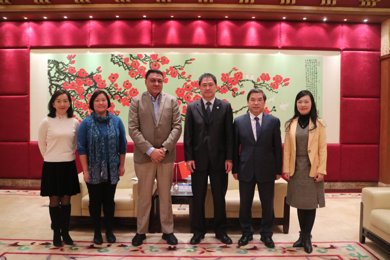 本网讯 近日,萨摩亚独立国驻华特命全权大使塔普萨拉伊·特里·托欧玛塔(Tapusalaia Terry Uli Toomata)来访我校,校党委书记隋广军在北校区行政楼贵宾厅会见来宾,副校长焦方太参加会见。