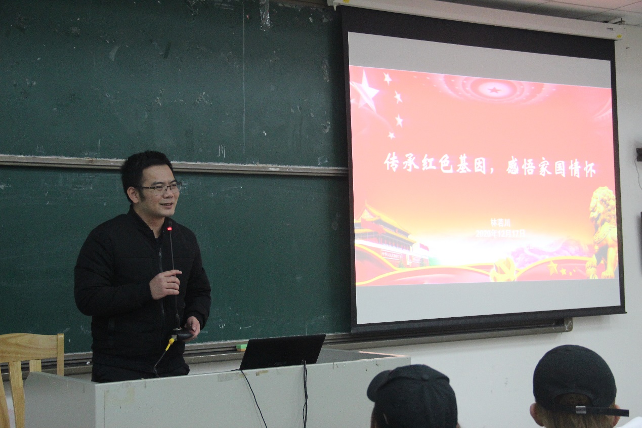 讲座一开始,林若川便用生动的语言为同学们讲解了西方各国红色所代表的不同含义,详细地介绍了我国红色文化的深厚内涵,带领现场观众加强了对红色文化的理解。讲座中,他结合习近平总书记的治国思想,谈及红色文化的内容,呼吁大家要利用好红色资源、传承好红色基因、发扬好红色传统,以此加深同学们的文化认同感。谈及传承红色基因的必要性,他通过这些前辈们的先进事例,引导同学们树立榜样,鼓励同学们向前出发,胸怀远大的理想和抱负,砥砺前行,做一名爱国的优秀青年。谈及如何传承红色基因,林若川从“多看:准确理解,不做‘低级红’、“多走:红色打卡,实地调查研究”、“多比:国际视野,从跨文化角度研究思考”等角度具体分析了传承红色基因的方法,给在场的师生们留下了深刻的印象。
