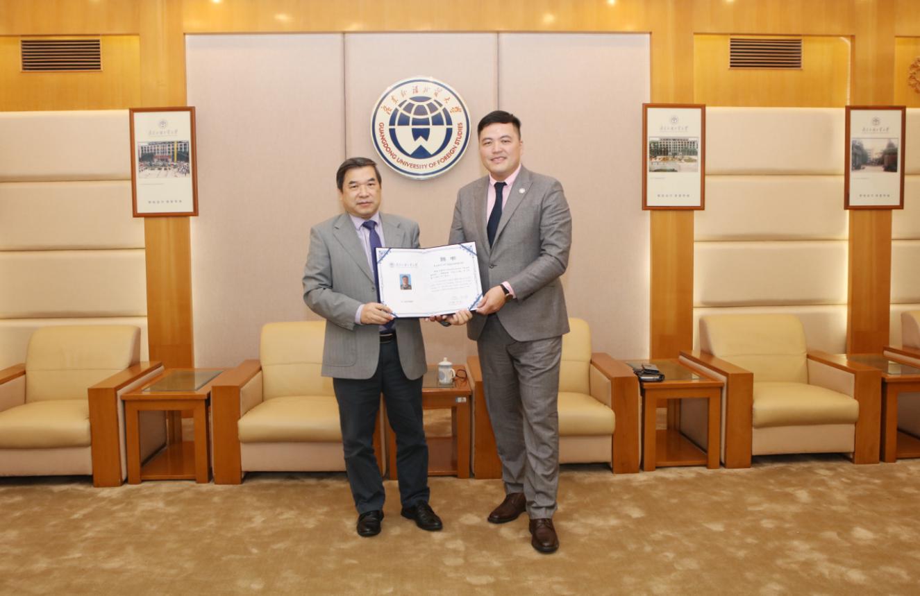 本网讯 近日,迪肯大学副校长、EQUIS国际认证专家沈伟教授莅临我校,对工商管理学科建设、国际认证和科研合作进行指导,其间受聘为大学云山讲座教授。云山讲座教授聘任仪式在北校区行政楼迎宾厅举行,我校副校长焦方太为沈伟颁发聘书。