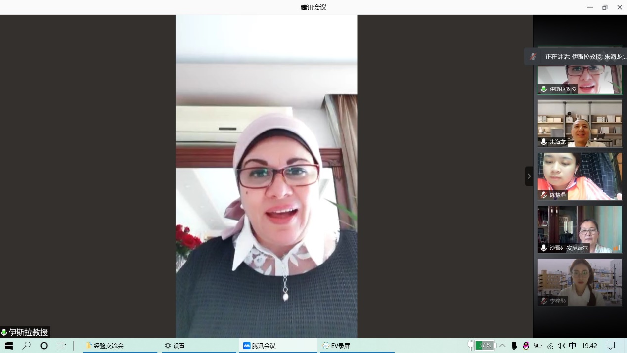 开幕仪式上,伊斯拉对来自哈萨克斯坦2所高校、埃及艾因夏姆斯大学的参会老师进行了介绍。哈萨克斯坦国际哈中语言学院教授沙吾列致开幕词,她表示虽然受到疫情影响,老师们身处不同国家、不同时区,仍然心系彼此,在研讨会上一同用中文畅谈线上汉语授课过程中的教学技能和心得体会,弥足珍贵。