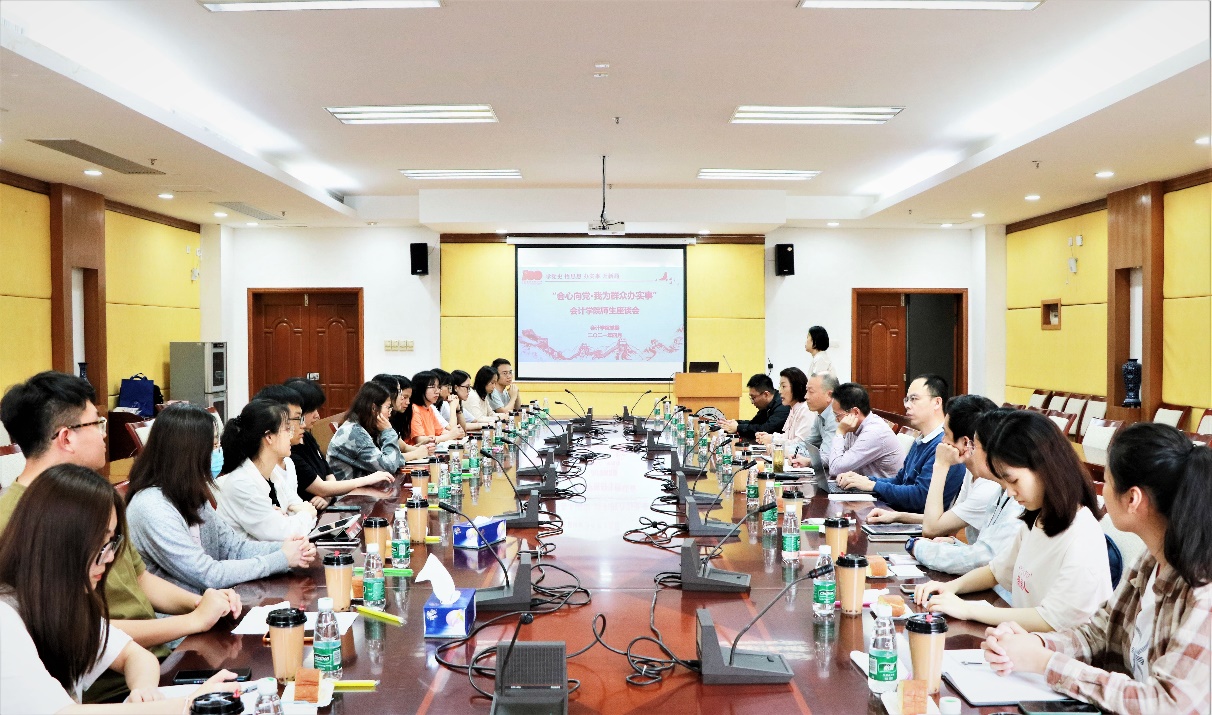 4月28日下午,会计学院组织了“会心向党·我为群众办实事”师生座谈会,本科生、研究生各班级学生代表参加座谈。会计学院党委书记黎冬指出,学院一直以来特别注重对学生的关爱,每年通过定期组织学生座谈会了解并解决同学们学习和生活中存在的困难。会计学院院长余鹏翼指出,学院会尽力为同学们的生活和学习提供优良的环境,希望同学们在校期间能够做到“三多三少”:一是多阅读少玩游戏,开阔视野,为走向社会打下坚实基础;二是多锻炼少熬夜,培养运动专长,强化身体素质;三是多交流少抱怨,加强跨专业跨年级交流,以积极的心态看问题,享受生活、享受学习。会上同学们就教学课程、就业指导、生活环境等方面提出了意见和建议,学院相关负责人进行了解答。