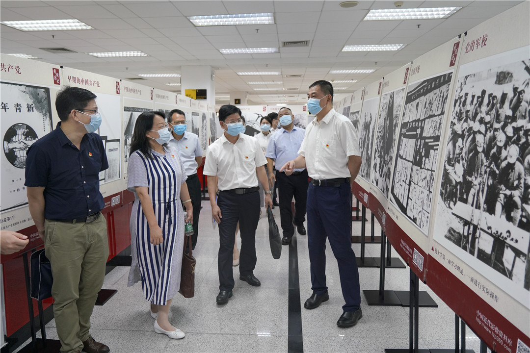 会后,巡回指导组一行与我校校领导、党史学习教育领导小组办公室有关负责人在北校区图书馆参观“百年党史图片展”“漫‘话’党史图片展”。巡回指导组一行与我校党委常委、副校长王廷惠,党委常委、组织部、统战部部长车小真,党委常委、宣传部、教师工作部部长胡文涛,党委办公室、校长办公室主任谢伟光进行了座谈交流,对学校下一步学习教育进行研究。
