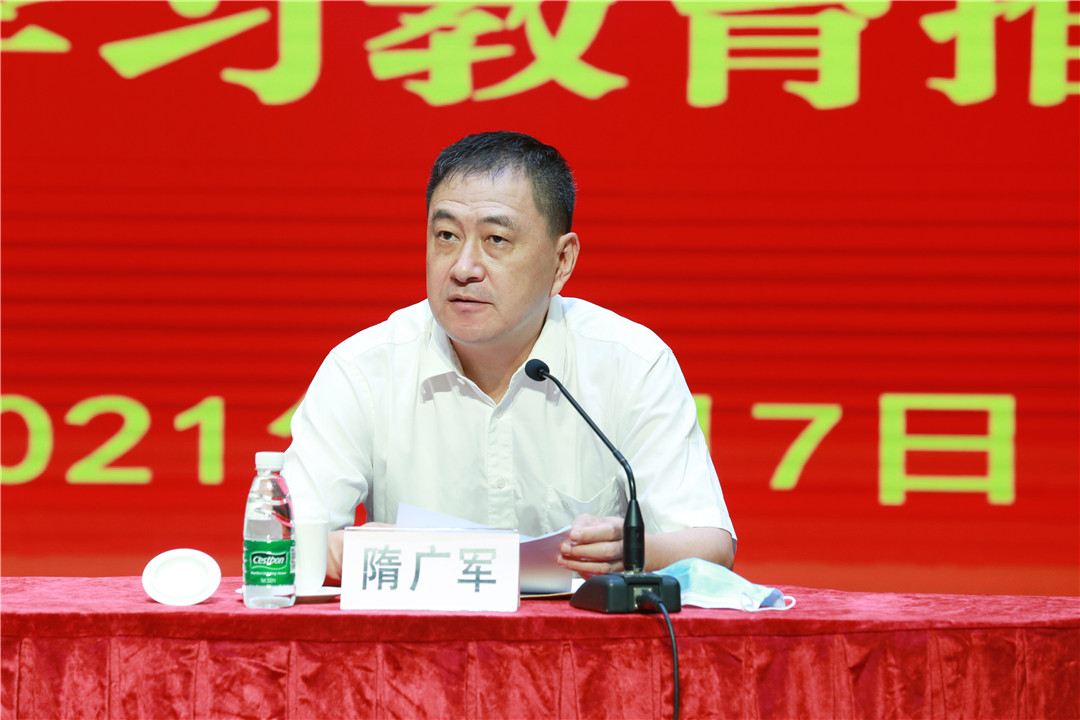 隋广军从加强组织领导和督促指导、紧扣中心工作推进学习教育、分层分类开展专题学习、开展理论宣讲与研究、开展主题文化教育和革命传统教育、策划全覆盖专题培训、深入推动“我为群众办实事”、营造浓郁的宣传舆论氛围等八个方面对我校前一阶段党史学习教育工作进行回顾。他指出,党史学习教育启动以来,我校党委按照党中央、省委、省委教育工委部署要求,高质量高标准开展党史学习教育,汇聚了推动学校教育事业高质量发展的智慧和力量。