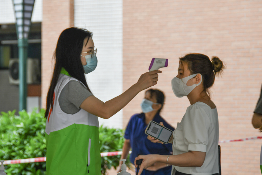 学生志愿者协助测温