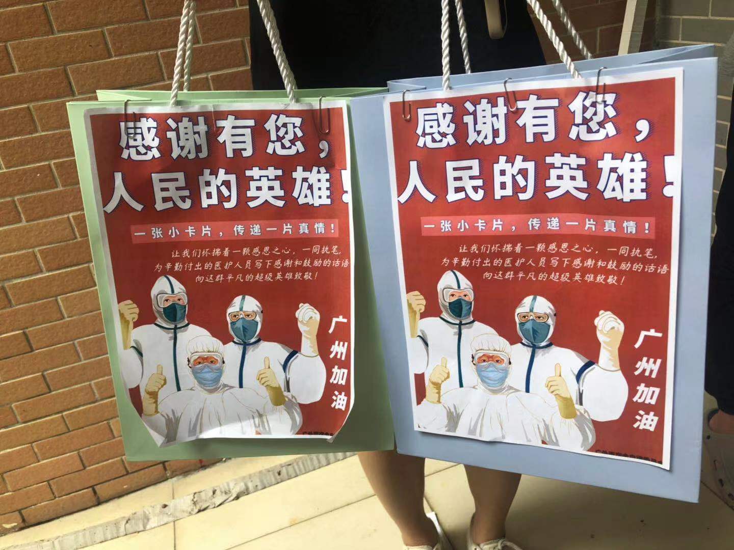 学生为医护人员献上贺卡和礼物