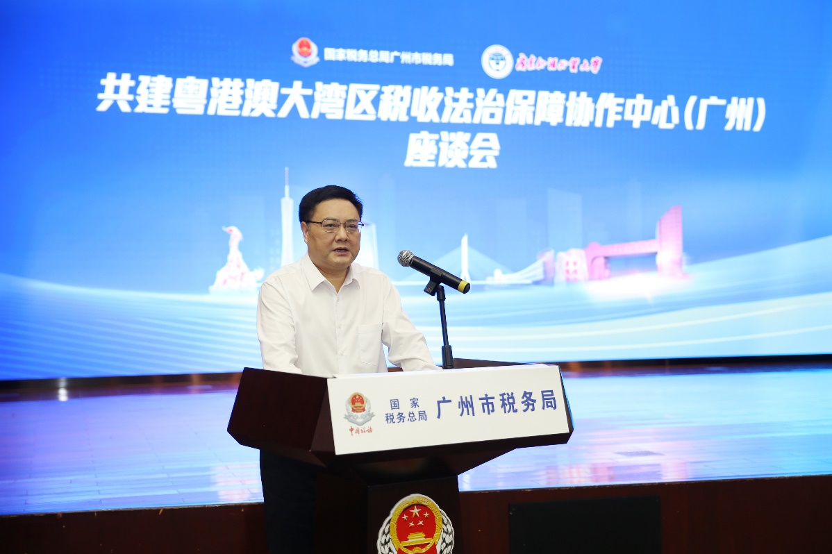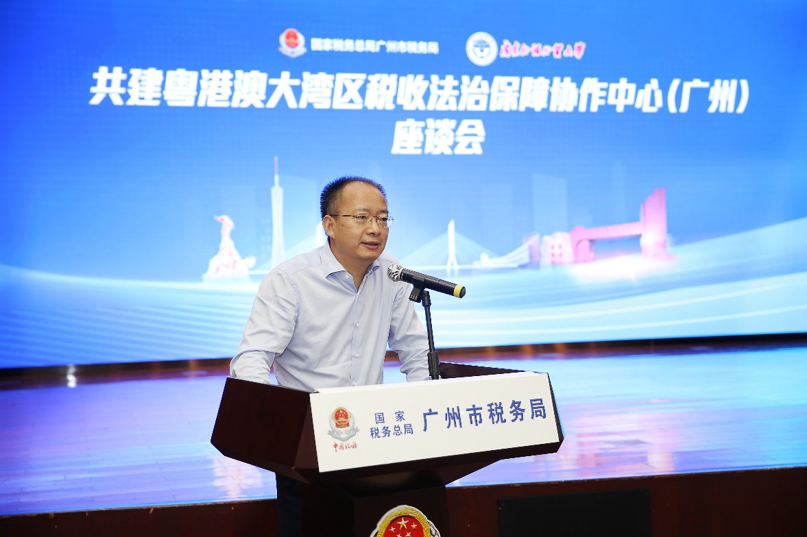 广东省税务局党委副书记、广州市税务局党委书记、局长杨绪春在致辞中强调,共建“粤港澳大湾区税收法治保障协作中心”是广州税务在新发展阶段实施“1+3+12+N”战略体系的重要组成部分,是推动中办、国办《关于进一步深化税收征管改革的意见》在广州落地见效的重要举措,也是广州市税务局和广东外语外贸大学主动服务粤港澳大湾区发展的重要探索。中心将立足于广州在粤港澳大湾区中的核心引擎地位,坚持问题为导向,凝聚税收法治之智,共同运用法治思维加快解决税收法治方面的难题,从深层次推进粤港澳大湾区内税费政策趋同和税务执法规则对接,进一步提升税收法治水平。