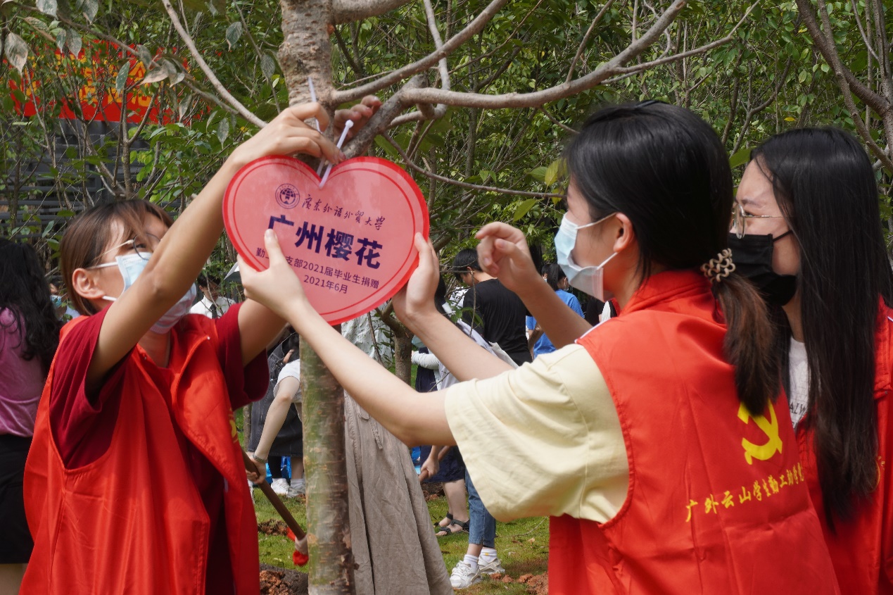 据悉,本次毕业生捐植留念树活动是我校为毕业生举行的典礼仪式之一。中国共产党百年征程波澜壮阔,百年初心历久弥坚。广外学子作为新时代青年,生在党旗下,成长在党的怀抱里,如今也要接过时代的接力棒,担起时代重托。在这样的时刻,学校将爱党报国荣校教育、感恩教育、劳动教育有机融入毕业生离校教育中,引导毕业生怀揣感恩之心,崇尚劳动、尊重劳动,树立尊重自然、爱护自然的生态文明理念,鼓励毕业生以奋斗作桨,不忘初心、牢记使命,为实现“两个一百年”奋斗目标贡献青春力量。