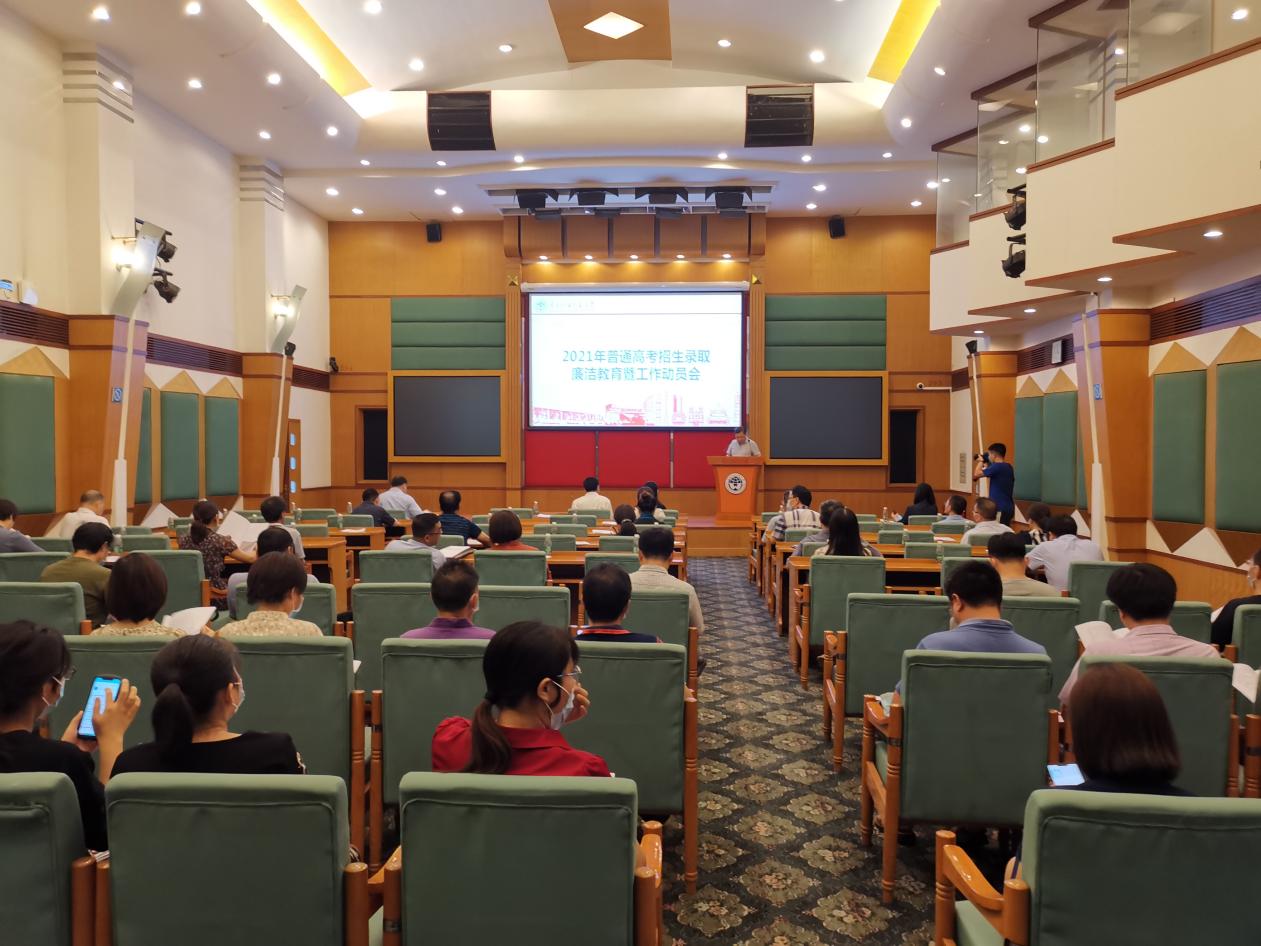会上,教务处处长、招生办主任杨晓辉详细介绍了2021年招生录取工作的组织架构、具体要求、工作安排、录取原则及有关注意事项。根据省教育考试院的安排,今年省内艺术类录取时间为7月15日至18日,普通本科批录取时间是7月15至23日。