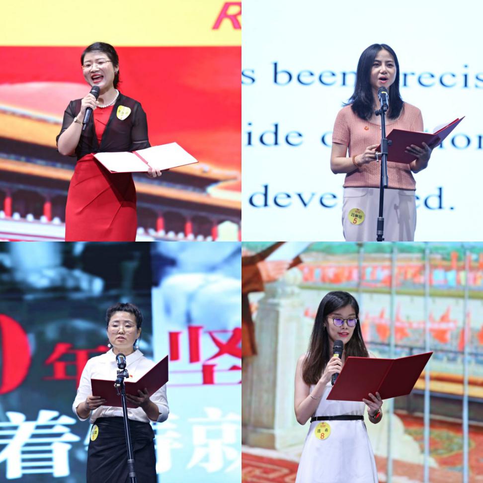活动现场高潮迭起、掌声不断,16名入围活动总展演的选手用饱满的热情、激昂的文字、专业的表达、质朴的情感演绎了今天幸福生活的来之不易,展现了“爱党爱国”的时代情怀和“逢盛世悟使命”的责任担当。经过激烈角逐,英语教育学院陈媛媛、贾红霞、吕琳琼、连希四位老师荣获“最佳红色篇章英语诵读者称号”,陆美美、叶菁菁两位同学荣获“最佳红色故事英语演讲人”称号,陈媛媛、陆美美还获评“精准语音奖”。此外,广州市社会科学院鲍雨老师获评“精彩演绎奖”,广州市天河外国语学校黎莹老师、东风东路小学刘瀚霆同学获评“精美台风奖”。
