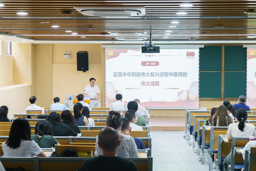 本网讯 9月14日下午,由校党委副书记、校长石佑启主讲的学习贯彻习近平总书记“七一”重要讲话精神专题宣讲会暨校长“思政第一课”在北校区第一教学楼时代讲堂开讲。