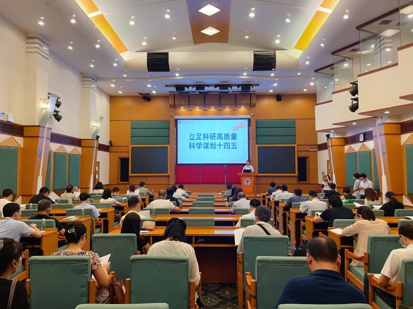 本网讯 9月16日,2021年下半年新学期科研工作布置会在北校区国际会议厅召开。会议由校党委常委、副校长何传添主持。各教学、教辅单位分管科研工作负责人,各研究机构、期刊编辑部、校级科研团队负责人及科研处全体人员出席会议。