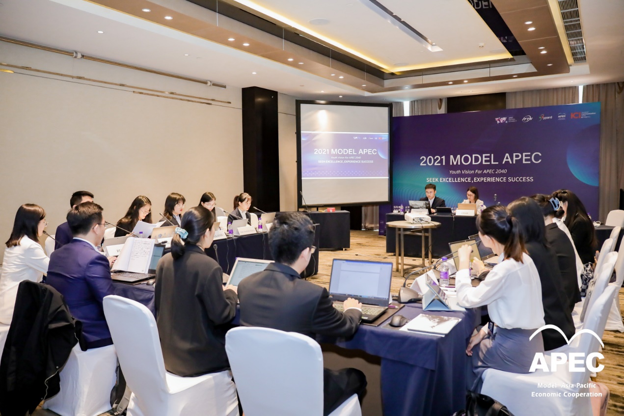 MODEL APEC通过高度模拟APEC会议形式,旨在为亚太地区的青年构建一个同政府官员、商界领袖和著名学者之间相互交流的平台。让当代青年更加关注APEC的发展以及亚太地区政治、经济和文化的走向,培养更多的未来领袖。本次大会以“Youth Vision for APEC 2040”作为主题,青年代表结合各自经济体发展情况从三个核心议题展开讨论并提出亚太地区的合作发展建议。三个核心议题包括贸易投资自由化,创新与数字化发展,强韧、平衡、安全、可持续和包容性增长。经过各个小组长达三个小时的讨论,从青年代表的视角就如何建设一个开放、活力、强韧、和平的亚太共同体出谋划策,最终形成的政策建议文件讲上交至APEC的政策层。