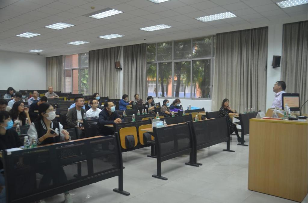 本网讯 为全面贯彻习近平总书记关于教育的重要论述和全国教育大会精神,总结交流教师师德师风建设工作新经验新做法,全面推进教师师德师风建设重点工作,引导广大教师牢记为党育人、为国育才使命,以立德树人优异成绩庆祝中国共产党百年华诞。近日,经贸学院在南校区实验楼C103召开师德师风专题宣讲会,南粤优秀教师刘中华教授主讲,经贸学院全体教职工出席活动。