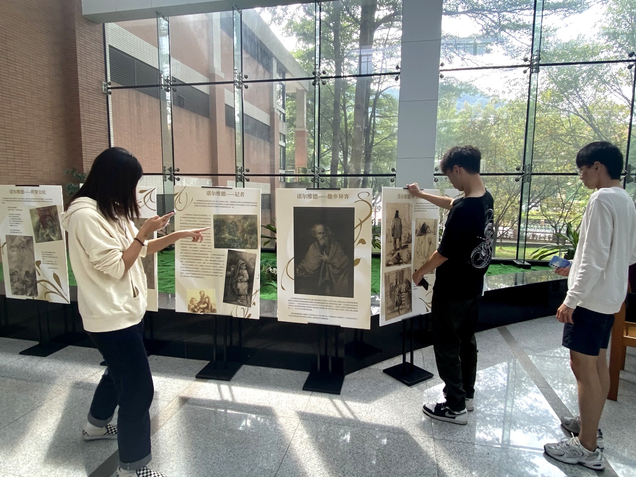 在活动举行期间,由波兰共和国驻华大使馆文化处主办、我校承办的波兰诗人西普里安·卡米尔·诺尔维德(Cyprian Kamil Norwid)诞辰两百周年纪念展,于10月29日在广外北校区图书馆一楼大厅正式开幕。本次图片展面向广外全校师生,以《诗歌与善意》为题,结合诗歌与画作,分别从“肖邦的知己”“世界公民”“知识巨匠”“记者”“他乡异客”“素描大师”等方面多维度地描述了全能天才诺维尔德。本次展览中文版由我校波兰语系教师林歆翻译。