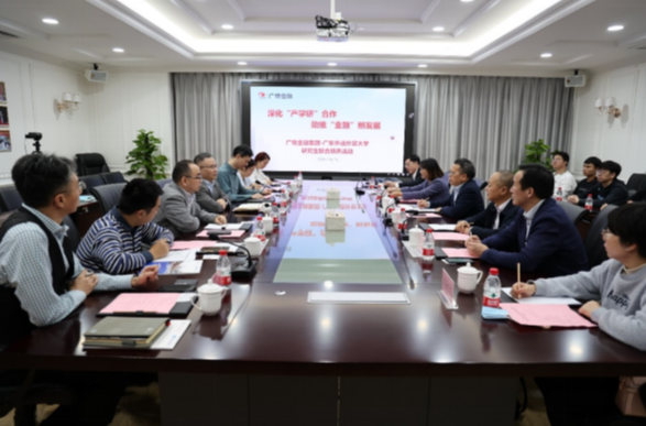 本网讯 近日,我校与省级研究生培养示范基地---广东广物金融产业集团有限公司开展联合培养实践活动。我校校党委常胡文涛,研究生院、经贸学院、金融学院相关负责人,广物金融集团董事长卢恩健、广物金融集团副总经理曾广卫,广物金融集团相关负责人以及我校研究生代表出席活动。