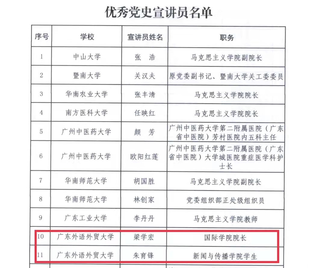 国际学院院长梁学宏、新闻与传播学院学生朱育锋获评优秀党史宣讲员