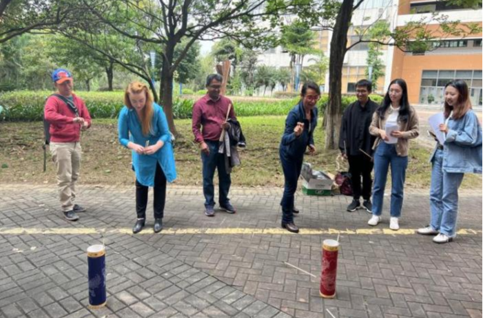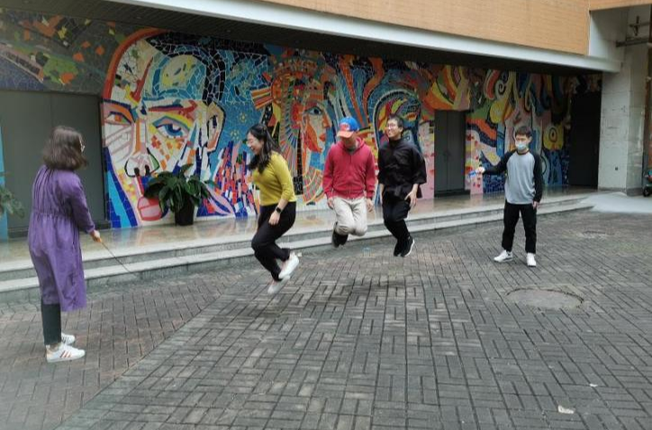 活动第二部分为参加中国传统体育游戏。汉语课堂志愿者对投壶、毽球和跳绳的背景、规则逐一详细介绍并带领外教示范体验,外教们摩拳擦掌,跃跃欲试。经过一番激烈的角逐,罗尼·鲍米克与卡塔日娜·伯莱克分获投壶冠亚军,全体外教和工作人员共同参与体验集体踢毽子和跳大绳。