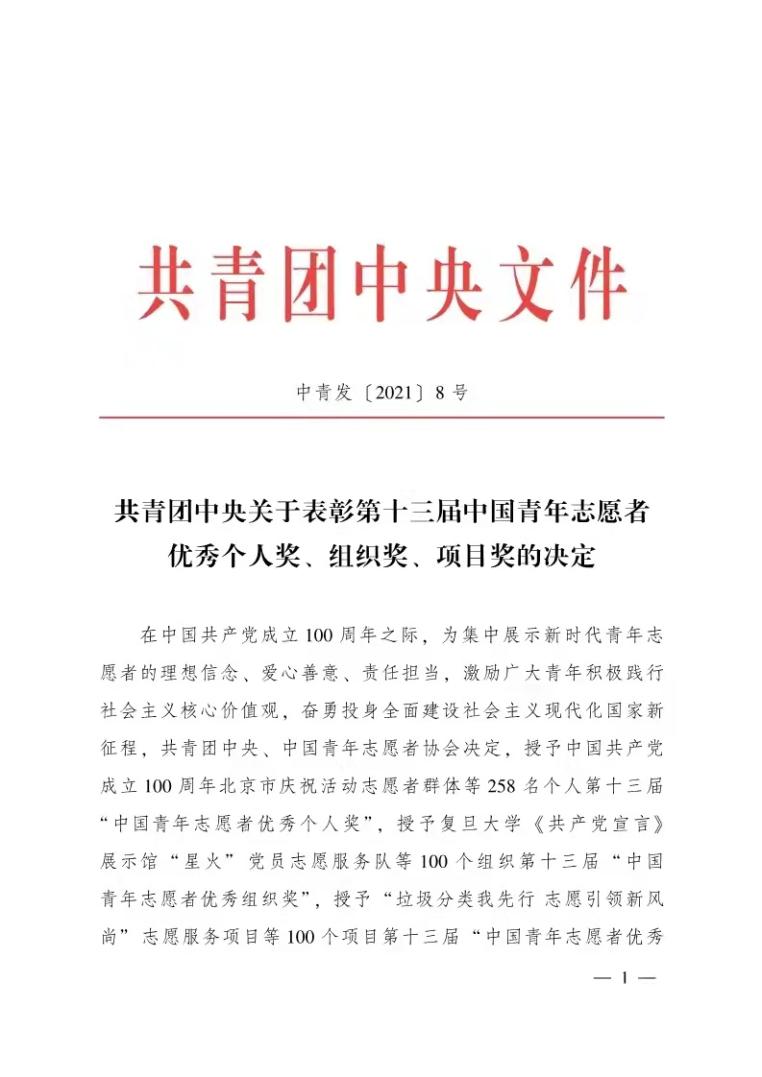 据悉,中国青年志愿者优秀个人奖、组织奖、项目奖由共青团中央、中国青年志愿者协会设立,自1996年以来已开展十三届评选表彰活动。本届表彰严格落实参评资格、条件和程序,注重面向基层和一线选树先进典型,注重对重大事件、重点领域中表现突出的个人、组织和项目的激励,展示新时代青年志愿者的理想信念、爱心善意、责任担当,引导广大团员青年在新时代新征程上奋勇建功立业。