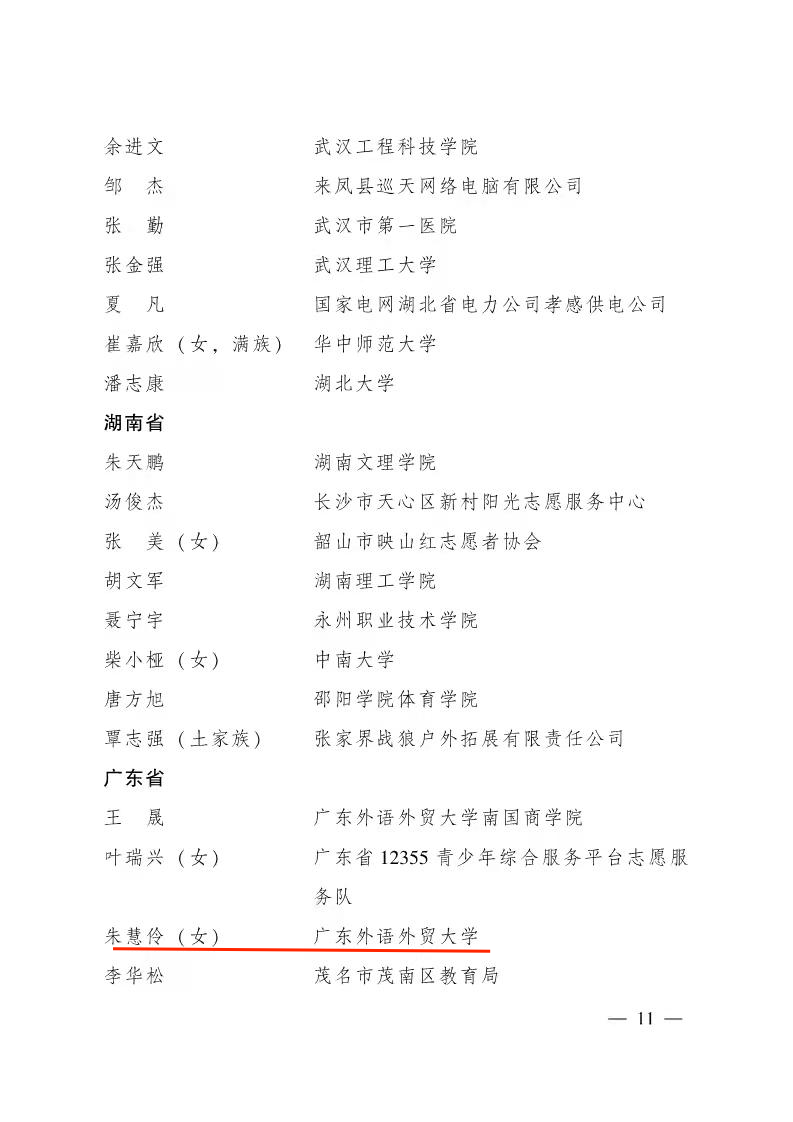 朱慧伶获“中国青年志愿者优秀个人奖”