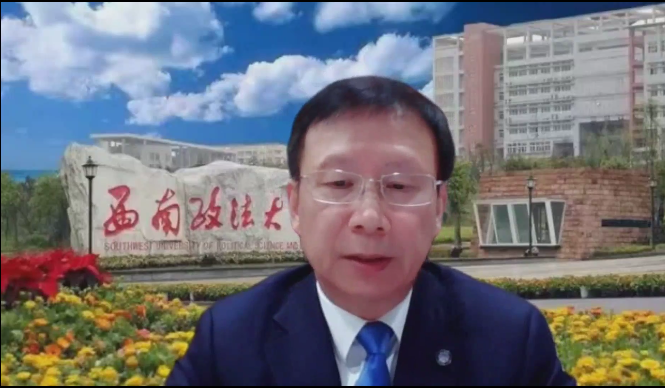 中国法学会党组成员、副会长王其江,中国法学会世界贸易组织法研究会常务副会长、清华大学法学院教授杨国华,西南政法大学副校长唐力,中新广州知识城开发建设办公室副主任徐晖,西南政法大学国际法学院院长张晓君,中国政法大学国际法学院院长孔庆江等领导和专家学者通过线上线下相结合的方式出席了开幕式。我校校长石佑启在开幕式上致辞,副校长王廷惠主持开幕式。