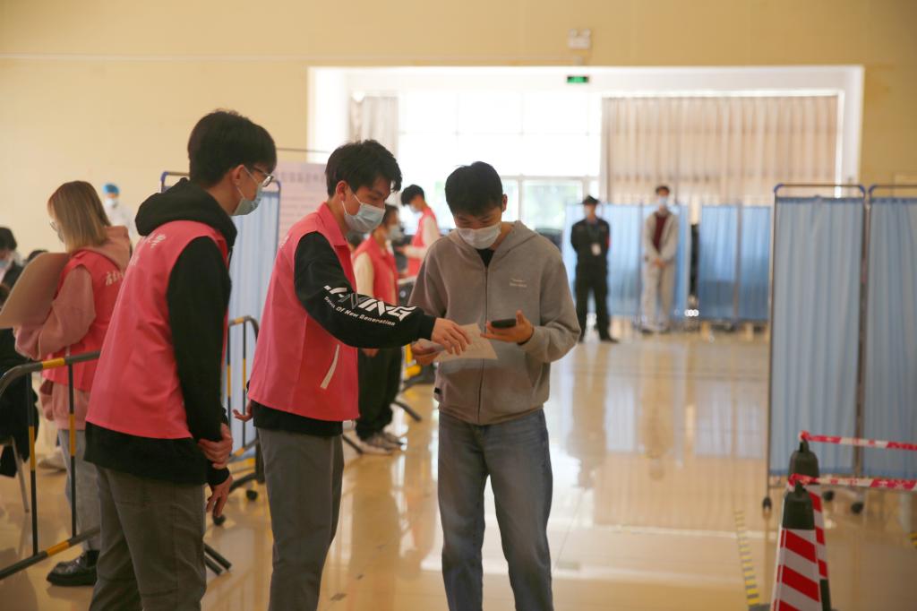接种现场区域设置有问询处、咨询登记处、等候区、接种区和留观区,并在每个区域配有志愿者,据相关负责人介绍,此轮“加强针”接种共有超过320名师生志愿者参与协助现场指引、分发表格等工作。