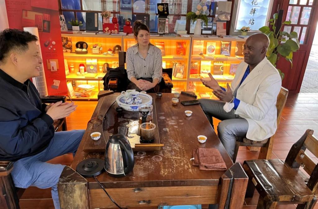 外教们在博物馆馆长曾超群和工作人员的带领下参观了博物馆内各部分的陈列,走访了陶艺制作工坊和研学工作坊等互动场所,体验了当时繁极一时的海上贸易之路,了解了中国源远流长的海上商贸历史,并与工作人员进行了深入的交流。