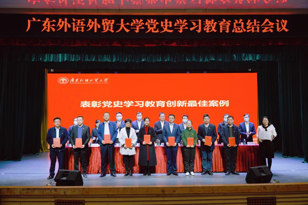 会上,全体人员观看了学校党史学习教育回顾视频《学习百年党史 汲取奋进力量》,学校还对10项党史学习教育创新最佳案例进行了表彰。