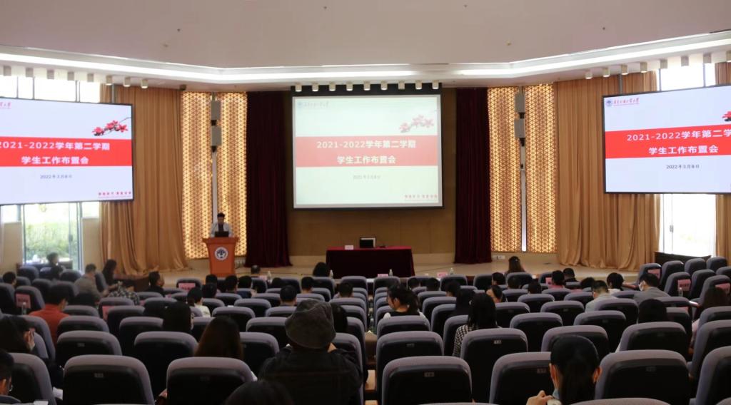 本网讯 近日,学校召开新学期学生工作布置会,校党委副书记唐锐出席会议并讲话。学生工作部(处)、校团委、学生就业指导中心等单位主要负责人通报2022年工作要点,部署新学期工作,全体学工干部理思维、定措施、抓落实、育先机,共谋发展、共开新局。