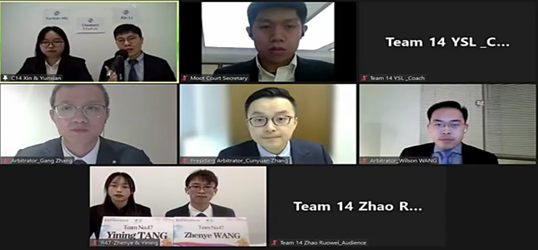 “Vis East”国际商事仲裁模拟仲裁庭辩论赛我校代表队由杨嵩棱副教授担任团队教练,团队由法学院6名本科生和3名研究生组成,分别是2019级本科生邢安婷、胡蕴贤、李一蕾,2018级本科生赵若炜和2019级研究生李素文、2020级研究生杨恩毅、李昕及2020级本科生沈青悠、植雨烟。其中,赵若炜、胡蕴贤、植雨烟、沈青悠作为上场队员参与Vis (East) Moot口头辩论。