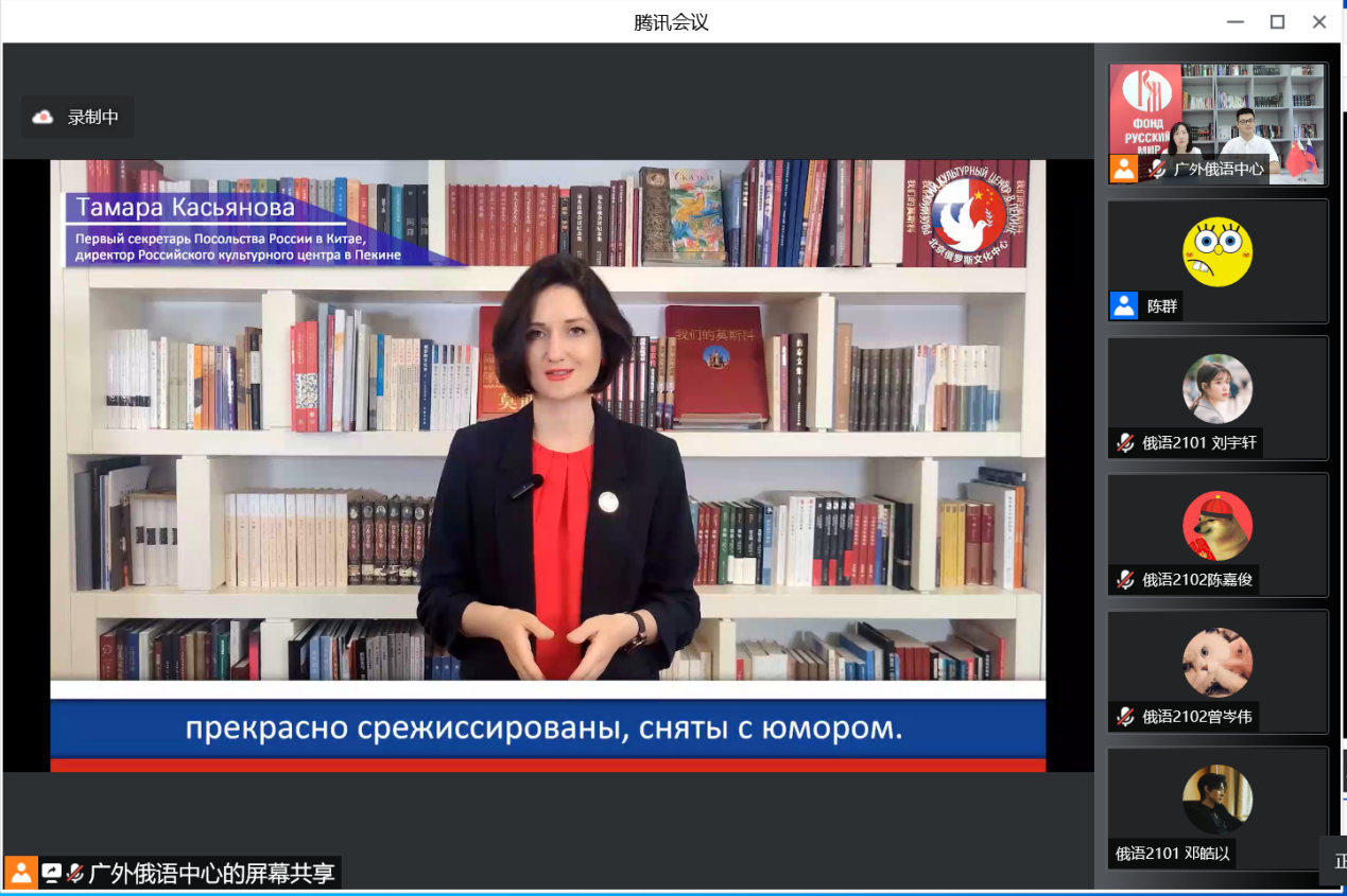 来自俄罗斯联邦驻广州总领事馆代表、北京俄罗斯文化中心代表、广东外语外贸大学、华南师范大学、厦门大学、海南大学、南昌大学、深圳北理莫斯科大学、广西科技大学、广东外语外贸大学南国商学院、广州外国语学校、佛山莘村中学等学校的150多名师生代表和其他俄语爱好者观看了线上直播。