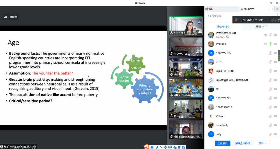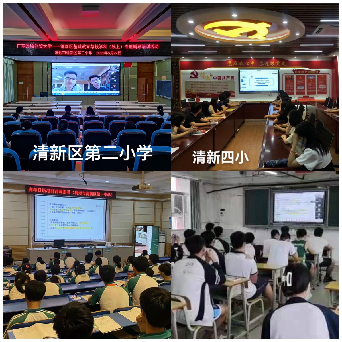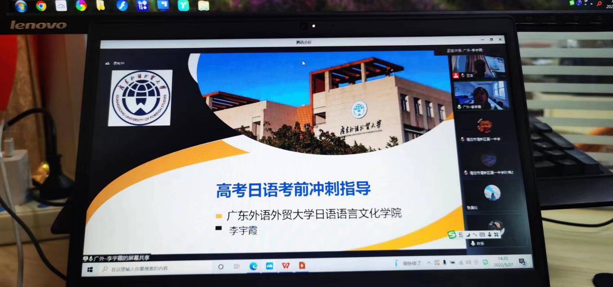 本网讯 为推动基础教育对口帮扶工作落地见效,5月27日,我校在线上开展了两场中小学学科专题培训,邀请日语语言文化学院、英语教育学院两位老师分别面向清远市清新区高三选考日语考生、小学英语教师全员开展学科线上辅导。清新区小学英语教师300余人、清新区高三日语考生443人及十余名日语教师参加培训。