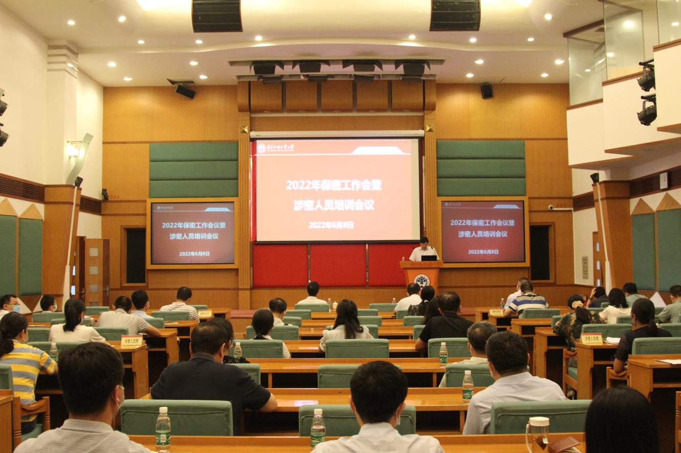 本网讯 6月8日下午,学校2022年保密工作会议暨涉密人员培训会议在北校区国际会议厅召开。会议邀请广东省国家保密局督查处副处长林晓灵作业务培训讲座。校党委副书记李云明出席会议并发表讲话。