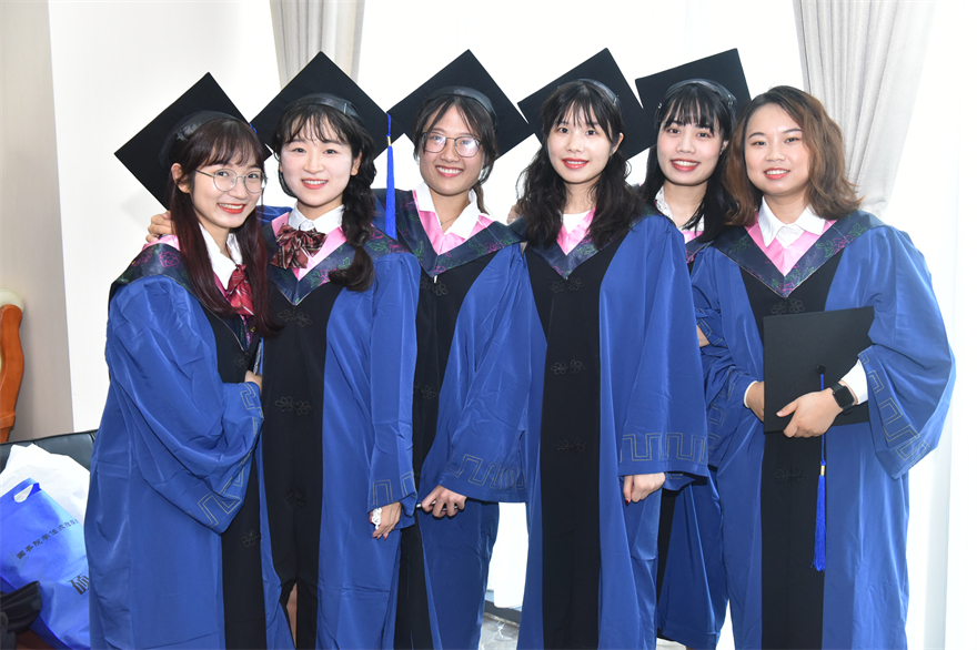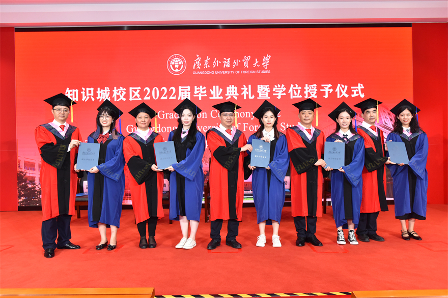 从主礼教授手中接过学位证书的那一刻,毕业生们感慨万千,心中不仅充盈着对大学时光的依依惜别,更饱含着对未来的憧憬。高级翻译学院毕业生李惠萍表示,两年的研究生生涯中,自己见证了知识城的飞速发展,知识城也见证自己的成长。感谢领导老师和同学朋友的鼓励与支持,伴我攻坚克难,踏上新的征程。高级翻译学院毕业生张婉婷谈到,听着校长和老师们的殷勤嘱托和美好祝福,对学校的不舍之情更浓了一分,衷心祝愿广外和广外知识城校区有更美好的未来。