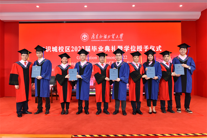 本网讯 6月23日,我校知识城校区2022届毕业典礼暨学位授予仪式在海丝知识中心举行。校党委常委、副校长刘海春等五位主礼教授为知识城校区首批研究生毕业生颁发学位证书,寄语毕业生们前程似锦、未来可期。