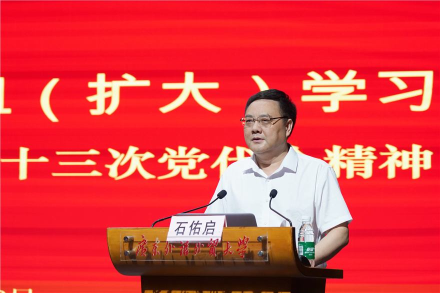 石佑启强调,学习好宣传好贯彻好省第十三次党代会精神,是全校各级党组织当前和今后一个时期的一项重要政治任务。为此,他提出三点要求:一是深刻学习领会,准确把握大会精神实质和丰富内涵。要坚持全面准确,做到学深悟透,结合学校工作实际完善发展思路,细化工作举措。二是精心谋划部署,持续掀起大会学习宣传贯彻热潮。各级党组织要从严从细落实学校工作方案;充分发挥我校学术资源和人才资源优势,深入推进专题学习、宣讲和培训;充分发挥宣传舆论阵地作用,广泛开展宣传。三是要抓好贯彻落实,奋力推动学校教育事业高质量发展。要聚焦政治统领、高质量发展、深化改革、队伍建设、安全稳定、政治生态建设等方面,切实把省党代会精神落到实处,以实际行动迎接党的二十大胜利召开。