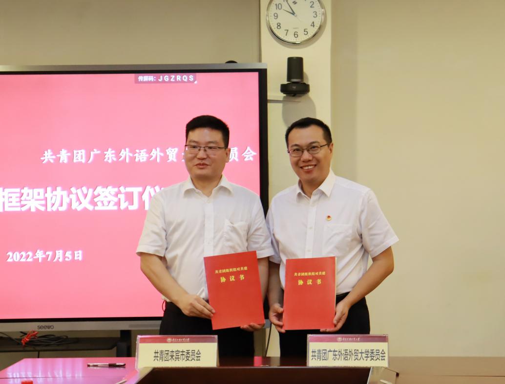 本网讯 7月5日,我校团委与来宾团市委结对共建框架协议签约仪式在北校区举行。校党委书记、校长石佑启,校党委副书记唐锐,来宾团市委书记苗志江和校团委书记纪彬出席会谈,来宾团市委与校团委相关人员参加签约仪式。