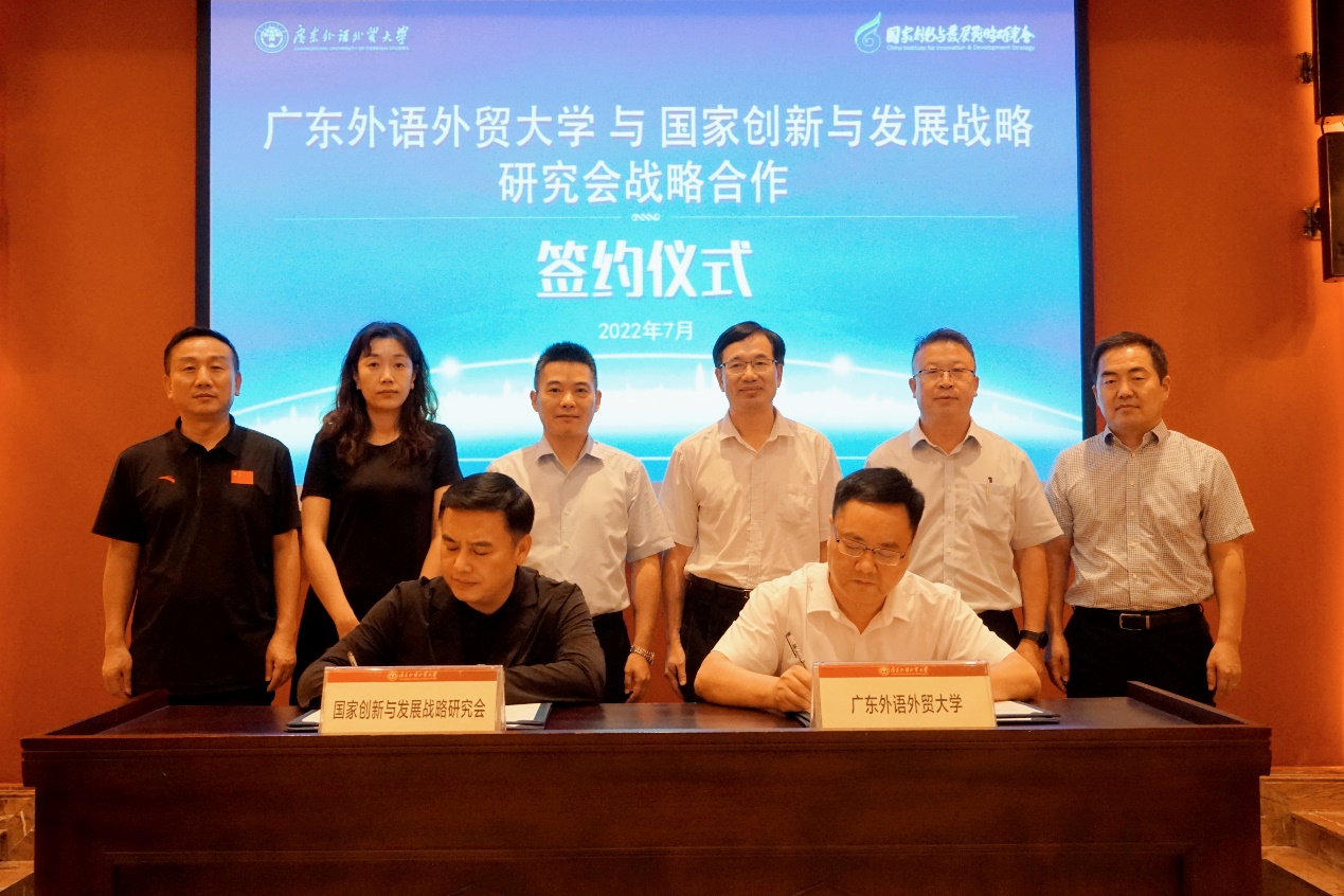 国家创新与发展战略研究会副秘书长曹炜、广州办公室主任王楠、副主任蒋小飞,我校党办校办主任谢伟光、发展规划处处长陈彦辉、校友事务与合作发展处处长谢文新、商学院副院长曾楚宏、MBA教育中心主任王刚等出席签约仪式。